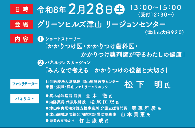 令和7年度 津山市在宅医療・介護連携推進事業「在宅医療・介護を考える市民フォーラム」